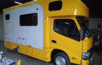 いつも世話になっている業者様より、新車のキャンピングカーをご入庫いただき、ガラスコーティングを施工しました。新車でも丁寧な下処理から施し、ピカピカに仕上げました。