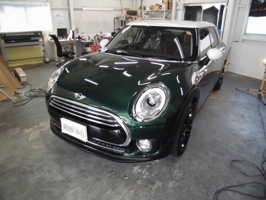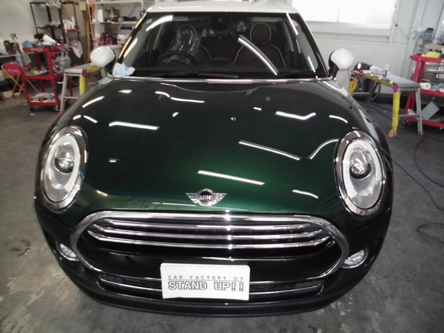 滋賀県I様よりクラブマンミニをご入庫いただきました! シックなグリーンのボディがつやつやに輝いて高級感が増しました! 当店のガラスコーティングは、新車でも走行車でも綺麗に仕上がります。ガラスの被膜で長期間、お車のボディを守ってくれます。 お車のボディでお悩みの方は、是非当店へご相談ください。