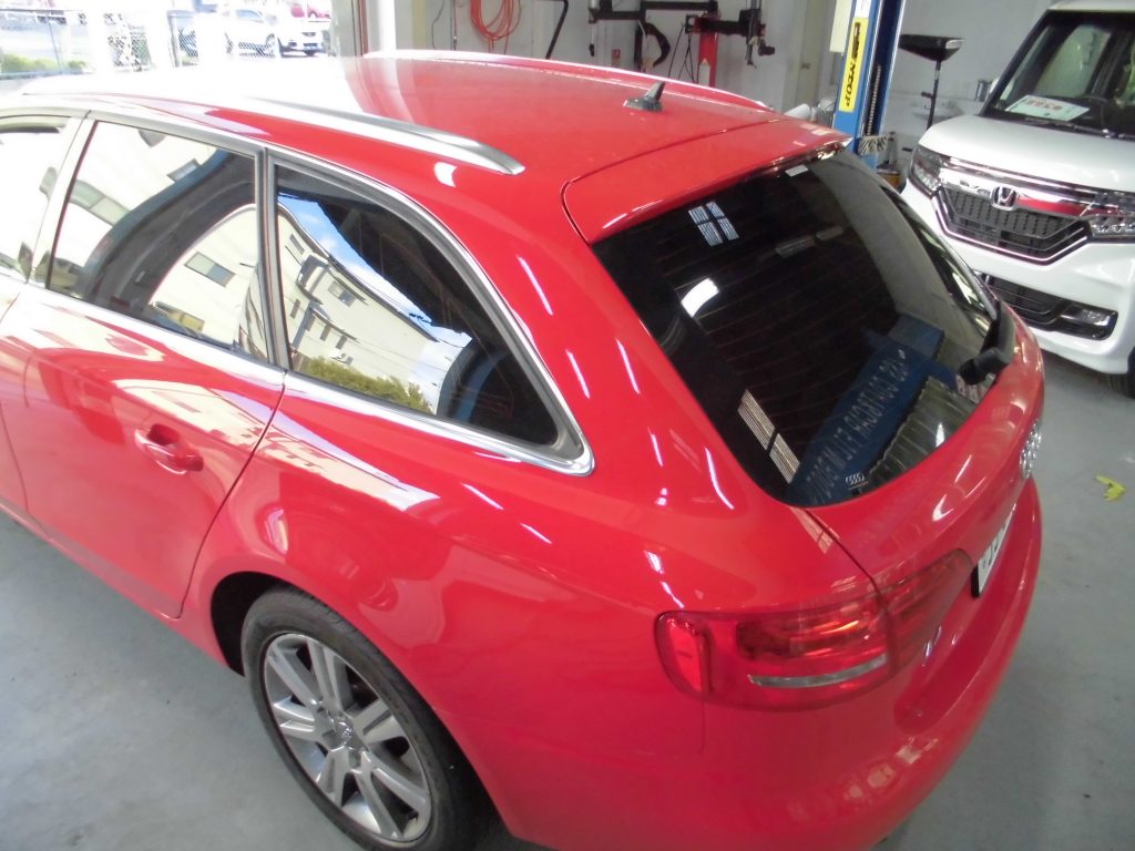 草津市O様のアウディに透過率15%のダルスモークを施工いたしました。 このフィルムは、車内からの視認性もよく、それでいてプライバシーもしっかり守れるので、当店でも人気のフィルムです。