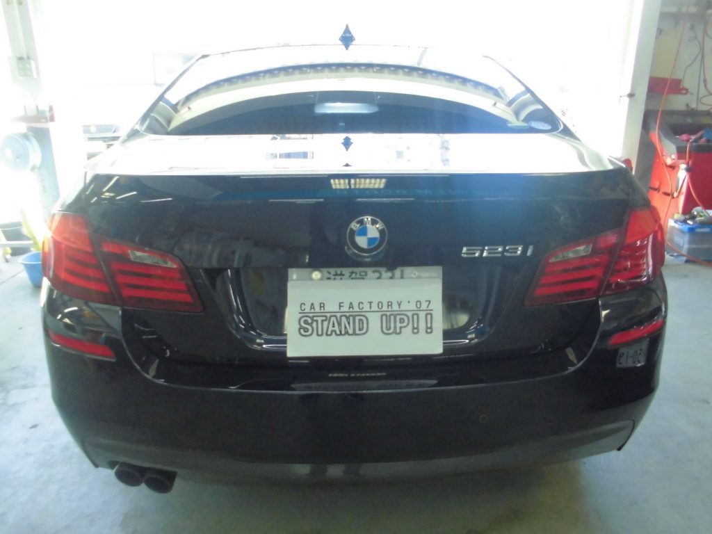 初めてお越しのI様のBMW5シリーズに、カーフィルムを施工しました! 透過率1%の真っ黒なフィルムなので、夏の日差しをしっかりカットできます! カーフィルムでお悩みの方はスタンドアップへご相談ください。